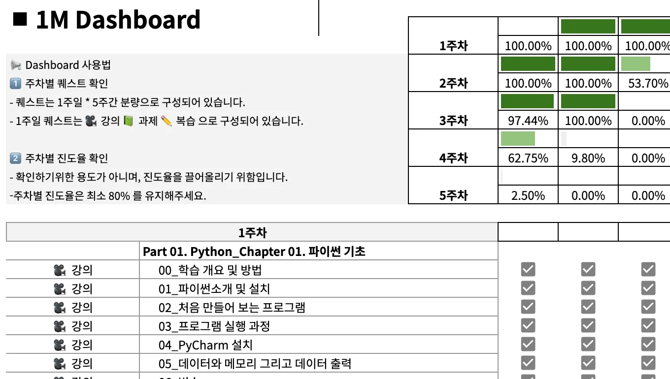 파이썬 : 기초~심화 강의 + 학습 점검 퀴즈 (2주)
