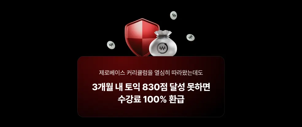 졸업 후 3개월 내 점수 달성 못하면 수강료 전액 환급!
