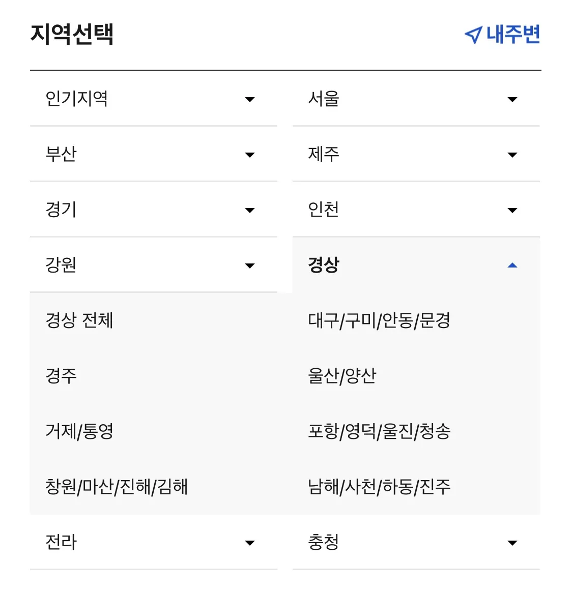์ง์ญ๊ตฌ๋ถ์ ํ ๋ ๊ด์ญ์๊ฐ ๋ชจ๋ ์์ด ๋ด๊ฐ ์ฐพ๋ ์ง์ญ์ด ์ด๋ ์นดํ