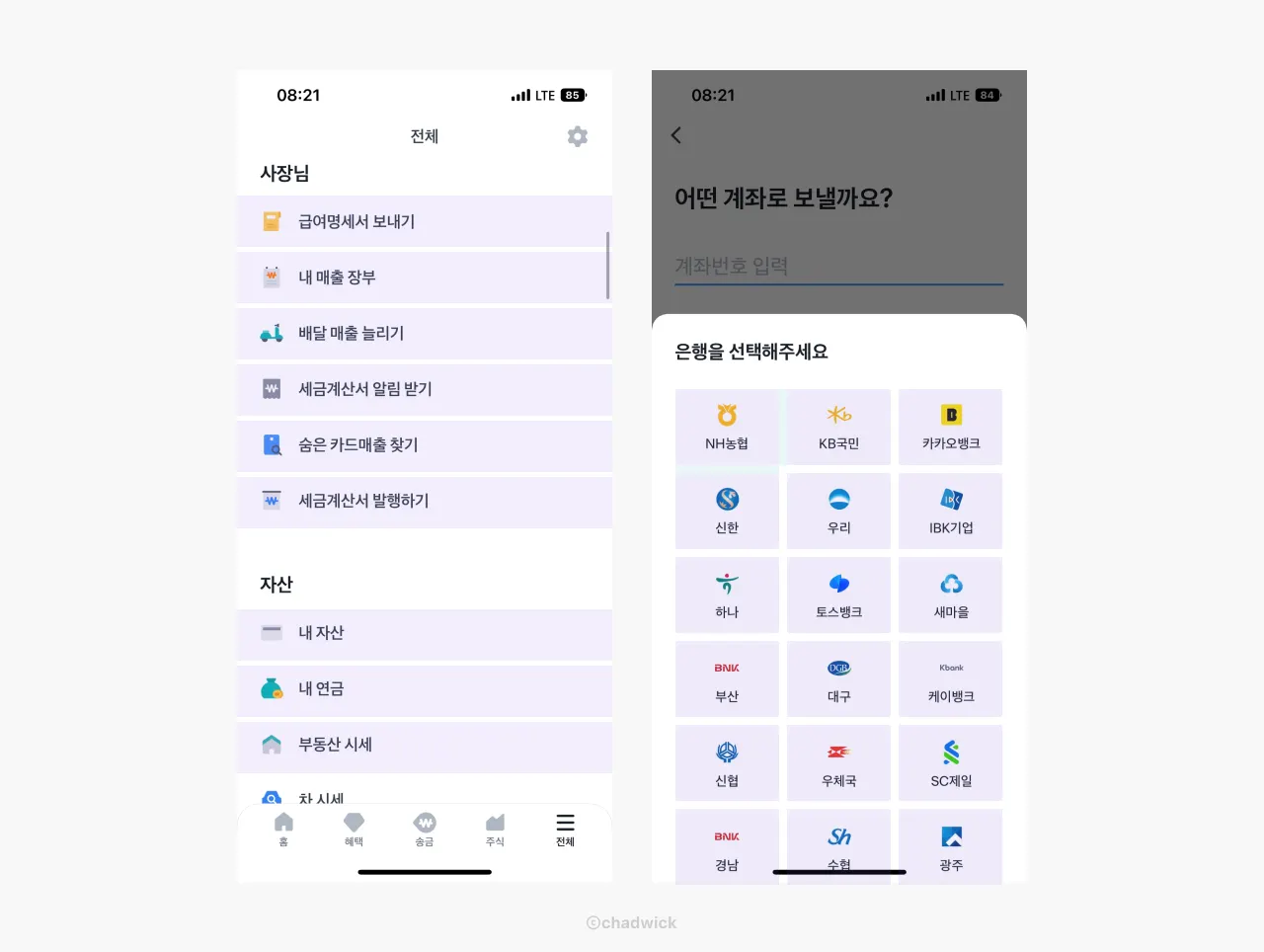 즉시성, 단순화가 생명인 간편송금 기능에서 사용자가 은행 선택 드롭다운을 펼쳐 수 십 개나 되는 은행 리스트 중 내가 원하는 은행을 찾는다는 것은 매우 수고스러울 것이다.