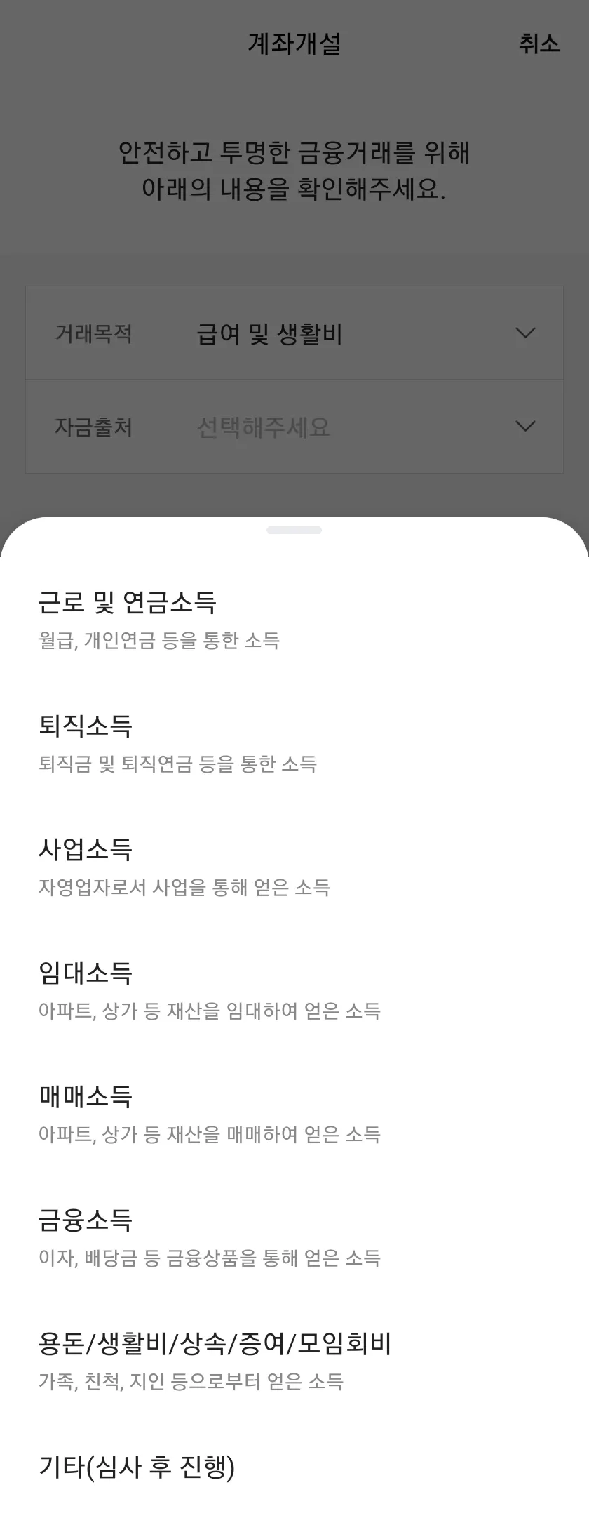즉, 실제 계좌 개설 단계와 계좌 이용 목적 등의 정보를 수집하는 단계를 나누어 설명하여, 개설 단계를 극단적으로 요약해냈다.