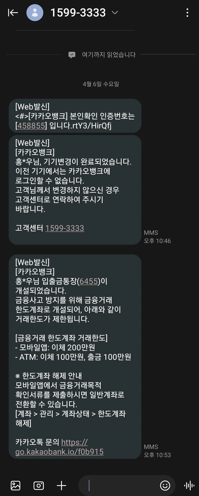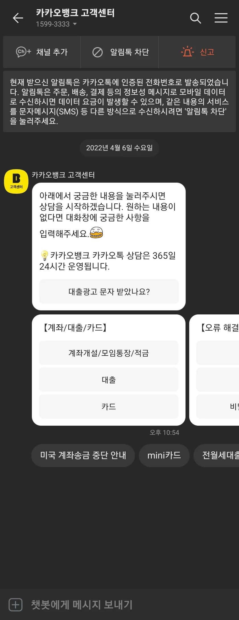계좌개설이 완료되면 관련 내용을 카카오톡과 메세지로 해당 금융상품에 대한 안내를 제공한다.