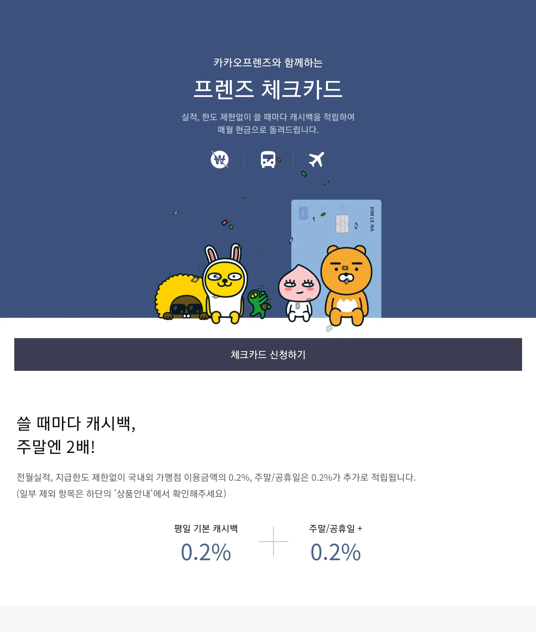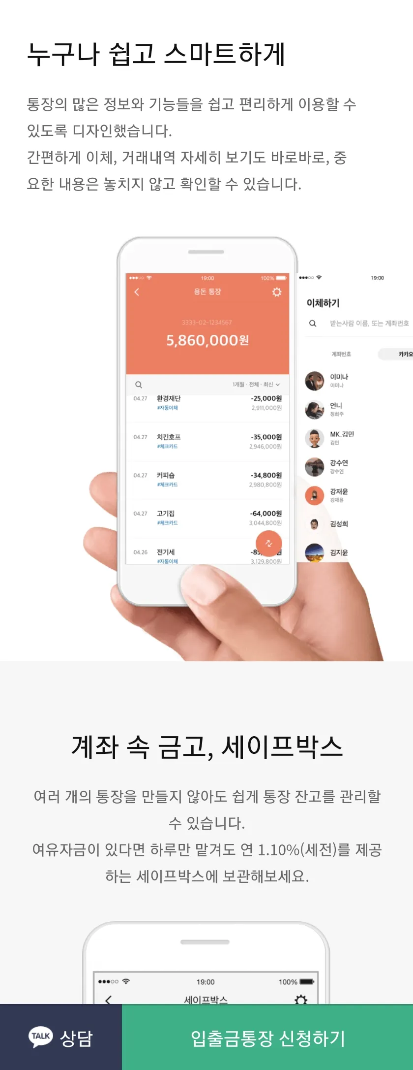 기능과 계좌상품의 특성을 살펴보고 싶지 않은 사용자가 바로 개설단계로 넘어갈 수 있도록 ‘선청하기’버튼을 최상단에 노출
