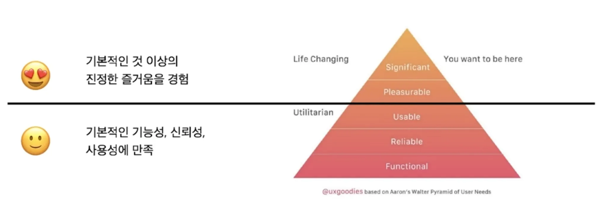 기본적인 기능성, 신뢰성, 사용성 이상의 진정한 즐거움의 제공이 필요하다.