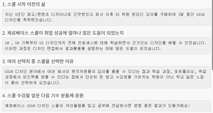 UIUX 디자인 스쿨 주말 야간반 수강생들이 전달해주는 생생한 취업 소식을 바로 공개해요