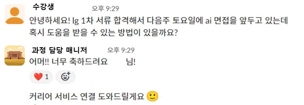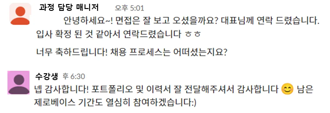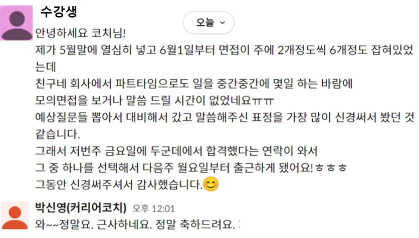 과정 수강 중 채용 연계로 정규직으로 취업 성공!