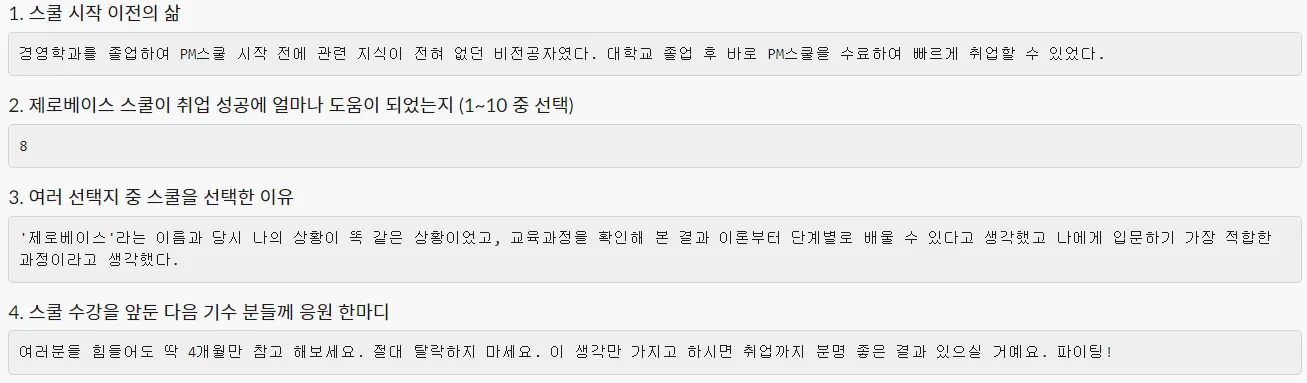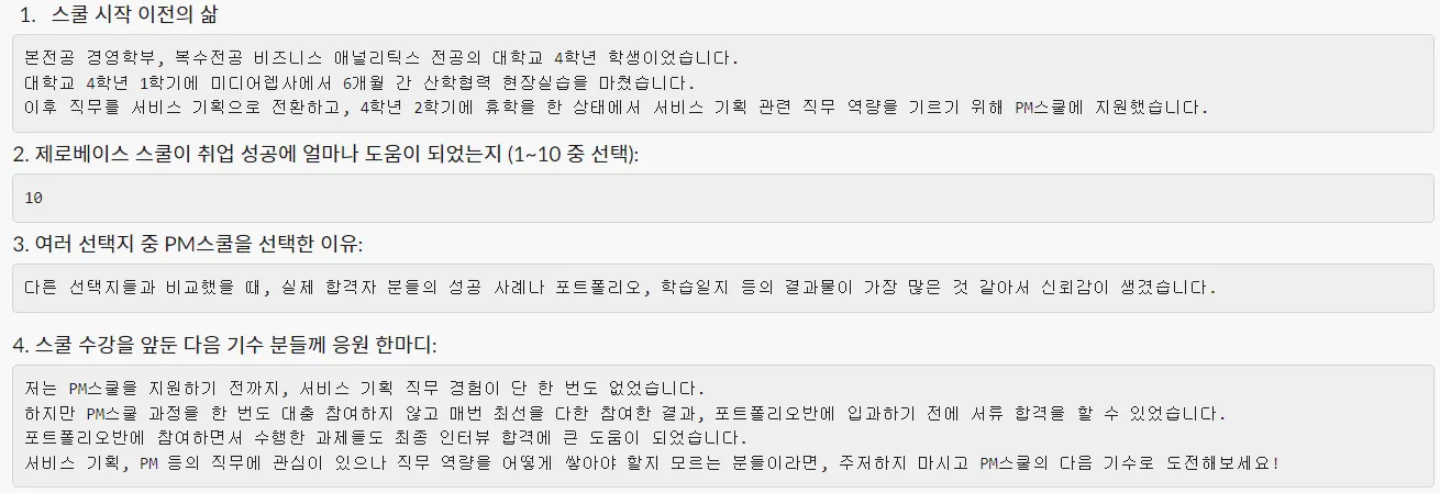 PM 스쿨 수강생들이 전달해주는 생생한 취업 소식을 바로 공개해요
