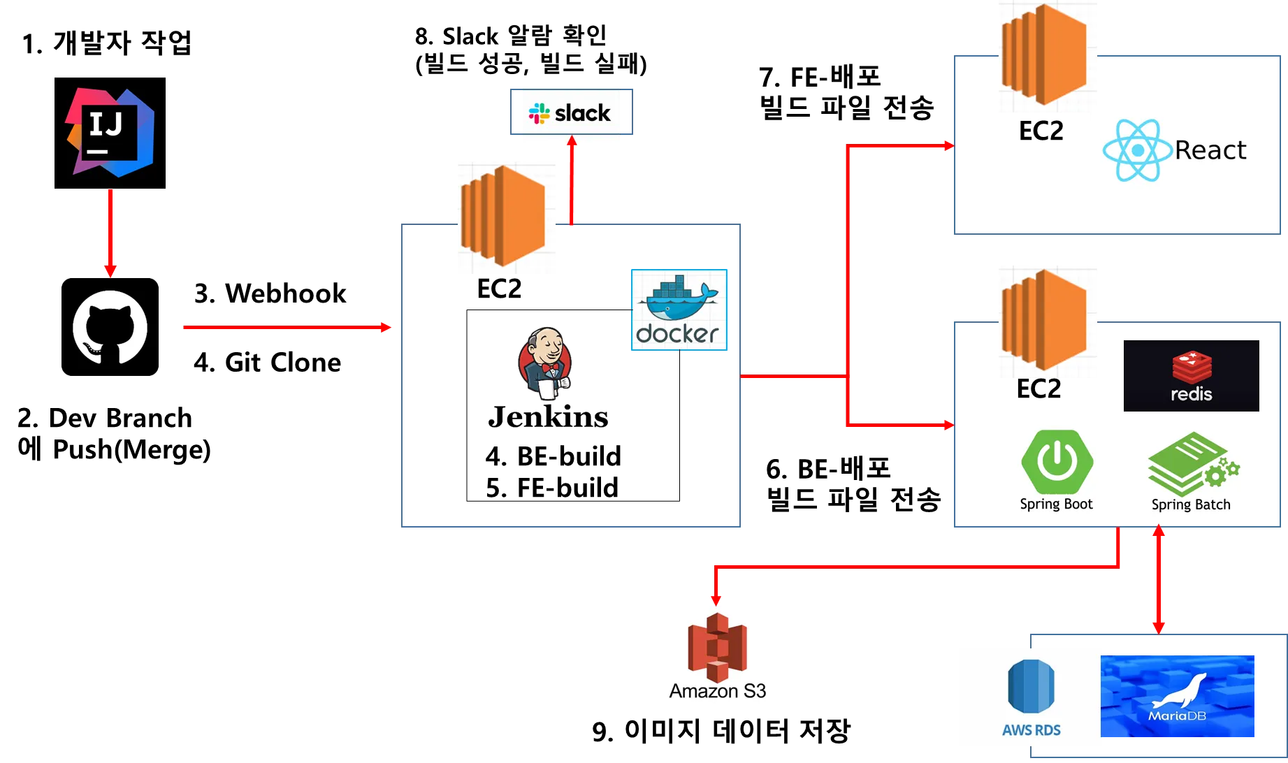 3) test: 배포 전 테스트 서버 구동을 위한 브랜치.