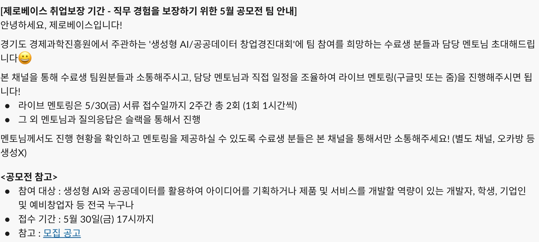 ► 실제 제로베이스에서 진행한 공모전 프로그램 예시