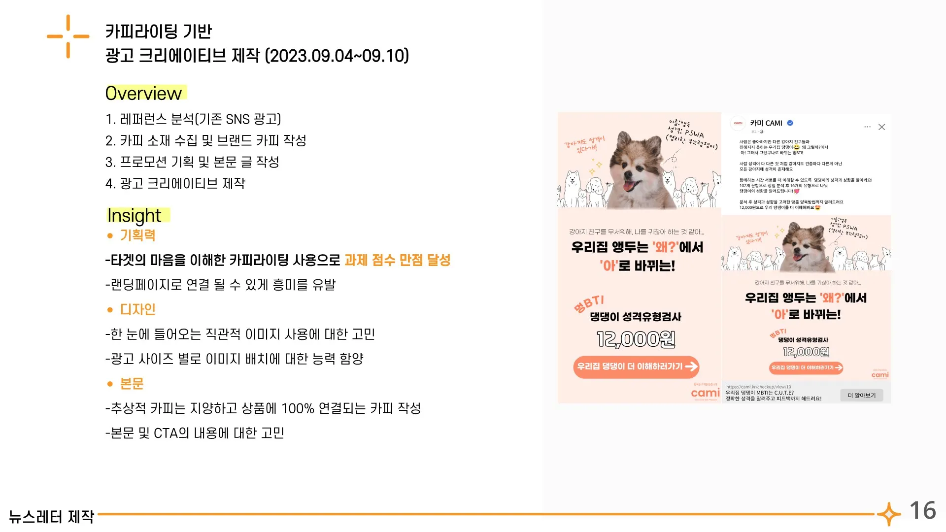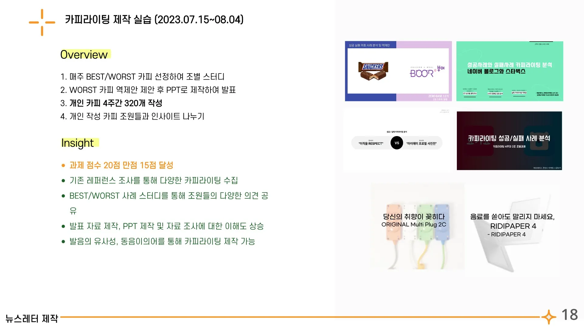 3개월동안 아니 그 이상 스쿨을 진행하는 과정이 쉽지 않을거에요..특히 저는 마케팅에 대한 기초 지식조차 없었지만 포기하지 않고 주어진 과제를 최선을 다해 하고자 노력했습니다! 특히 자가 학습하는 기간 동안 최대한 많은 시간을 투자해서 공부하셨으면 합니다! 콘텐츠 제작에 들어가고나면 시간이 정말 부족해요,,하지만 하면 무조건 됩니다!
