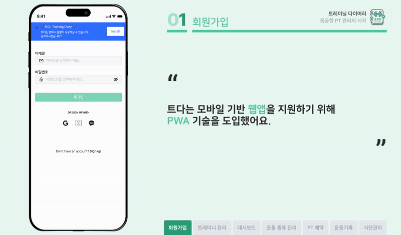 트레이니 및 트레이너의 회원가입 및 로그인 담당하는 페이지입니다.