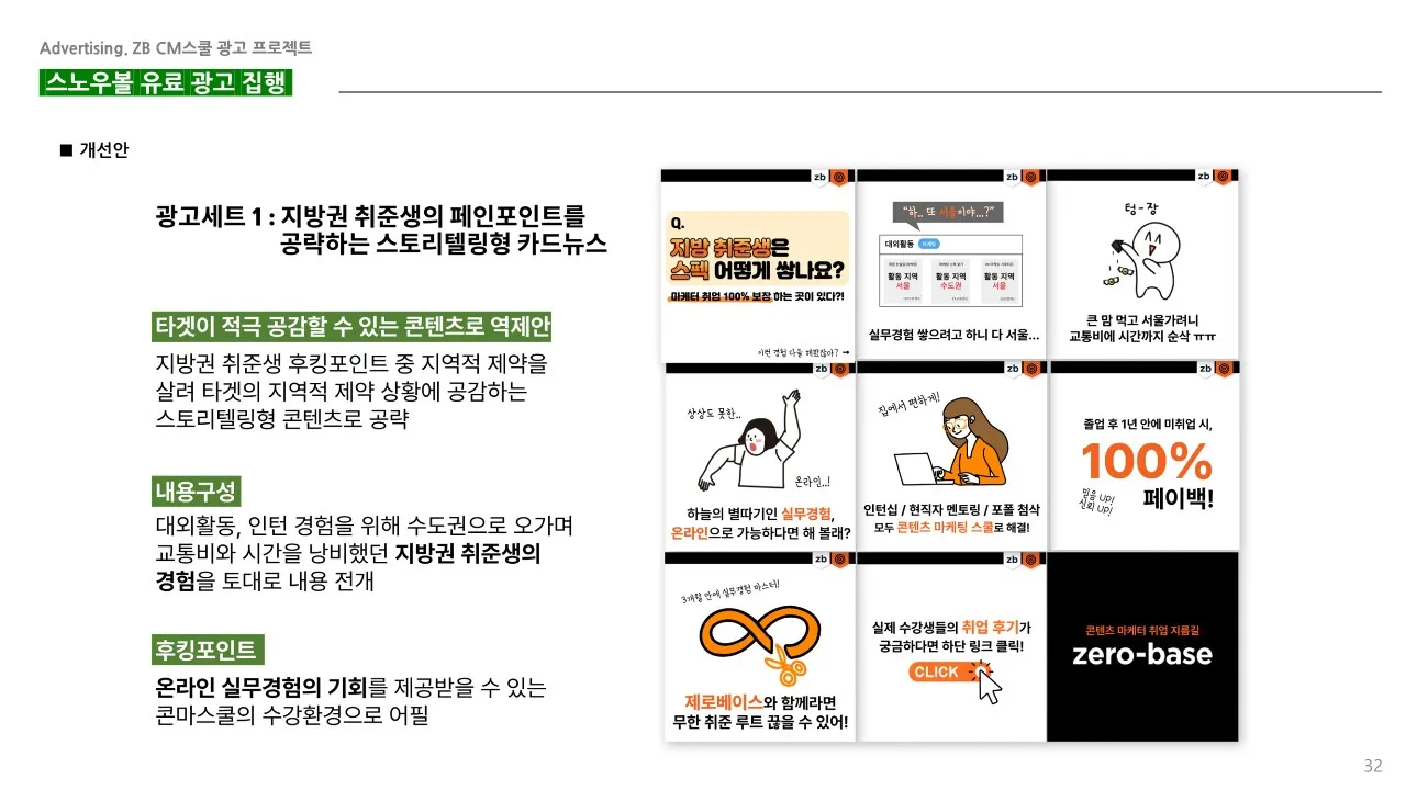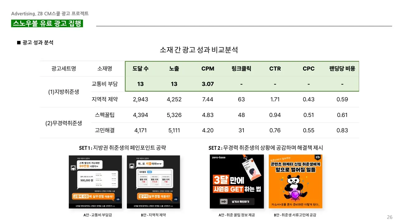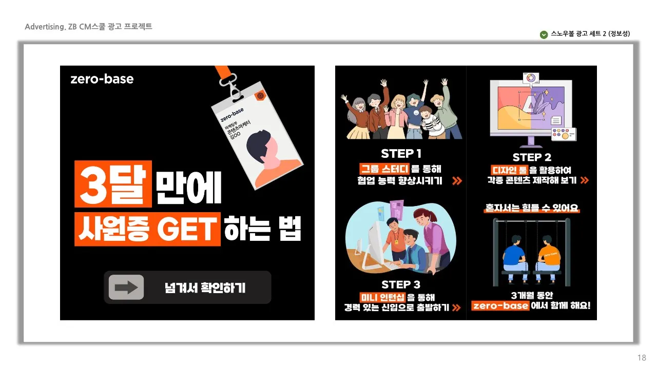 3개월 동안 열심히 참여하고 직접 콘텐츠를 제작하고 포트폴리오 제작까지 포기만 하지 않는다면 무조건 취업할 수 있을 것이라고 생각합니다. 충분히 해낼 수 있는 과제라고 생각하며 다양한 콘텐츠를 제작하며 자신이 어떤 부분에서 더 재미를 느끼는지 확인하는 과정도 경험하면 좋을 것 같습니다.