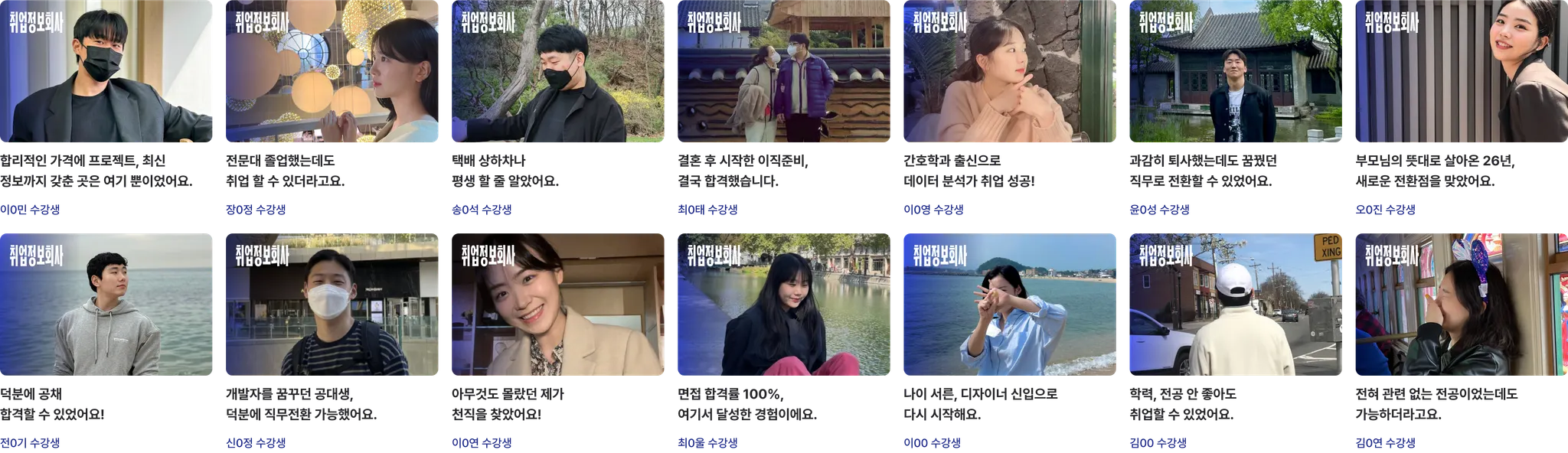 수많은 멘토 중에서도, 제로베이스는 최종 합격까지 함께 간 하이퀄리티 멘토를 별도로 선별하여 공개합니다. 이들 멘토는 실제로 수강생과 끝까지 함께하며, 단순한 상담이 아닌 “합격으로 연결된 멘토링”을 제공했다는 점에서 큰 의미가 있습니다.