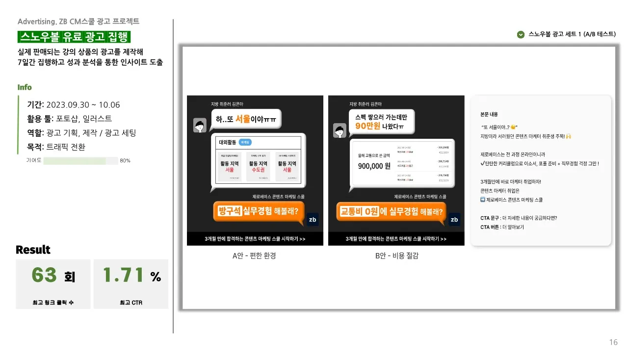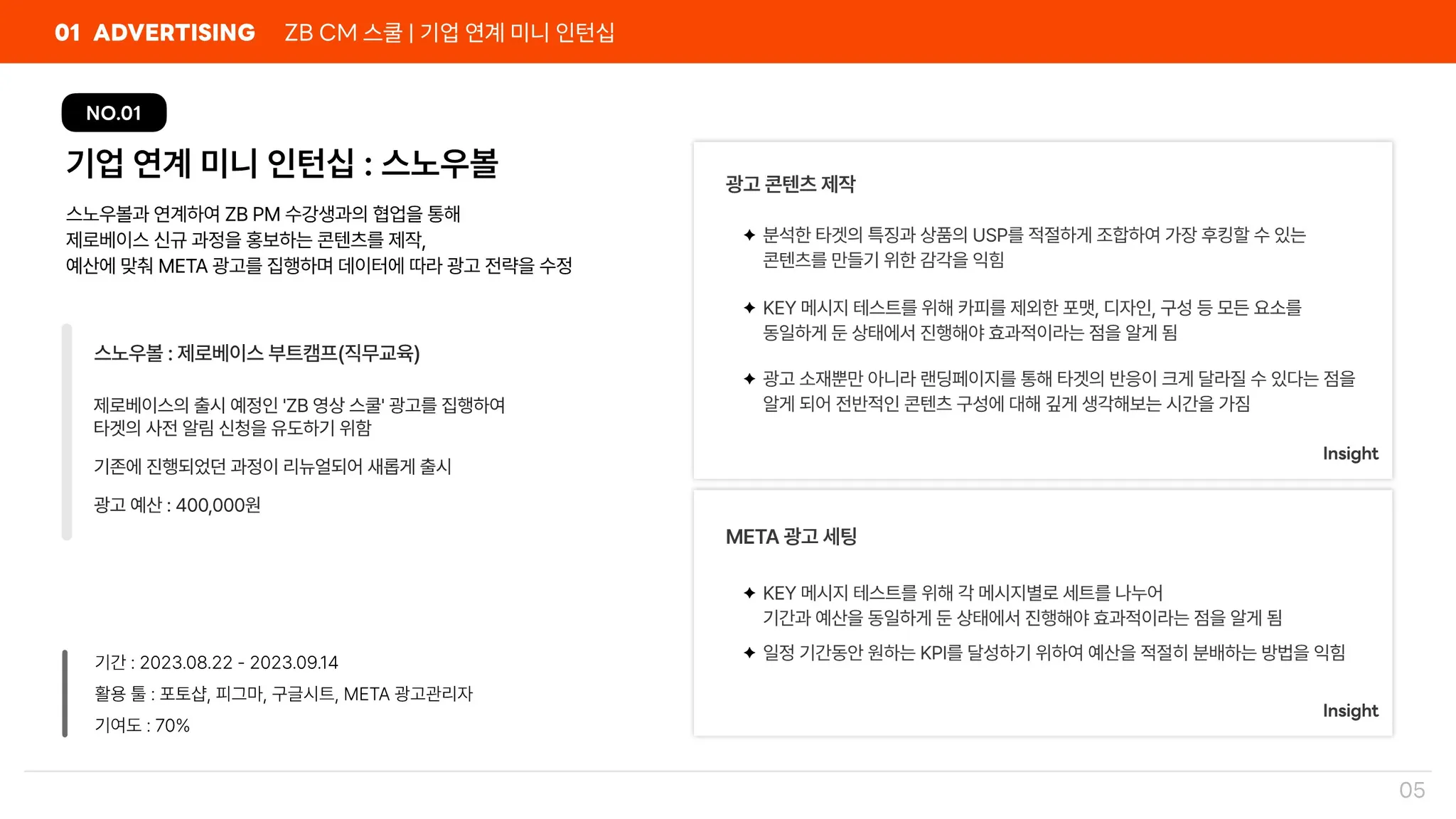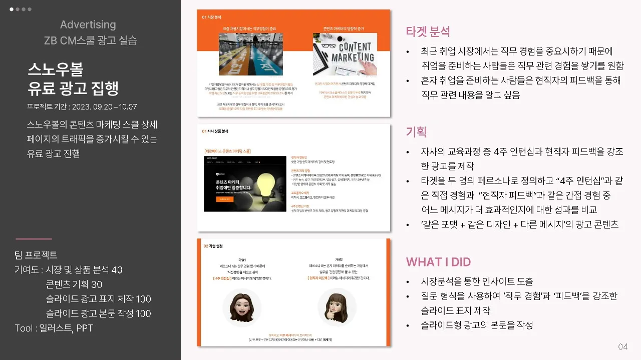 학습 과제들을 통해서 광고를 보는 눈이 많이 달라졌어요! 제가 놓치고 있던 부분들을 현직 멘토님들이 섬세하게 피드백 주셔서 실무에 큰 도움이 되었습니다!