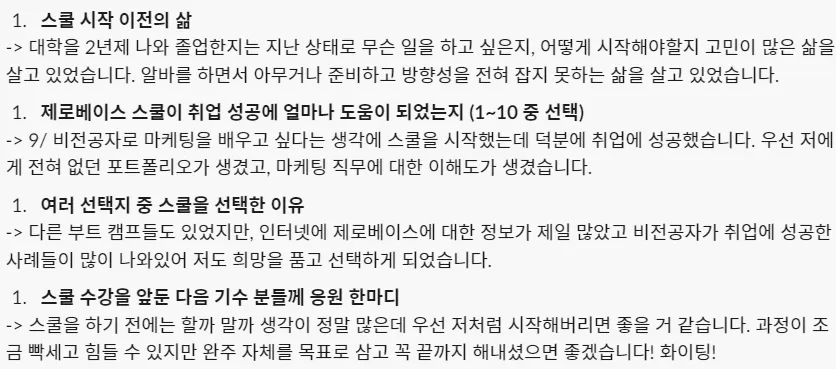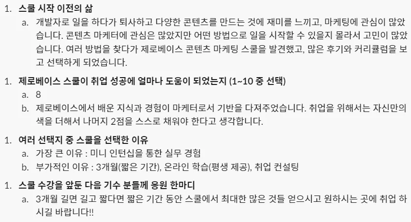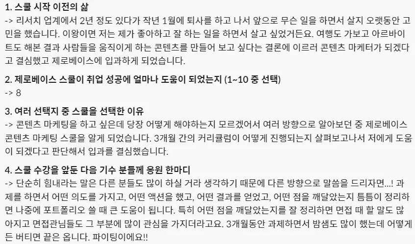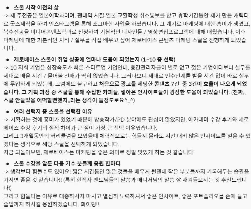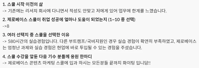 제로베이스 콘텐츠 마케팅 취업 스쿨 주말야간반 커리큘럼