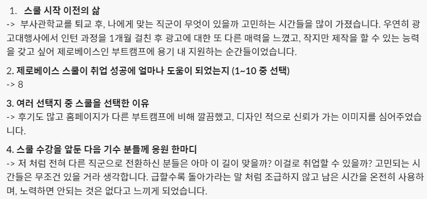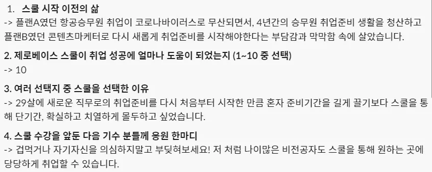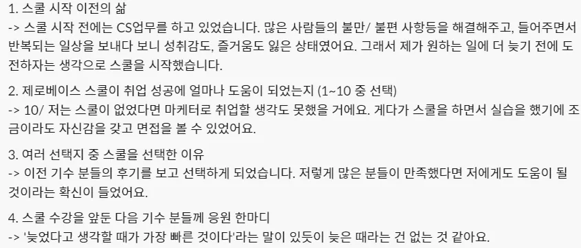 수강생분들의 취업 결심 이유는 아래와 같아요.