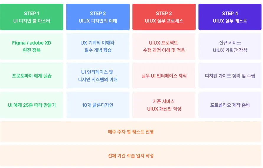 01. UIUX 기초 이론부터 필수 툴, 실무 퀘스트까지, 단계별 4step 구조로 체계적으로 학습