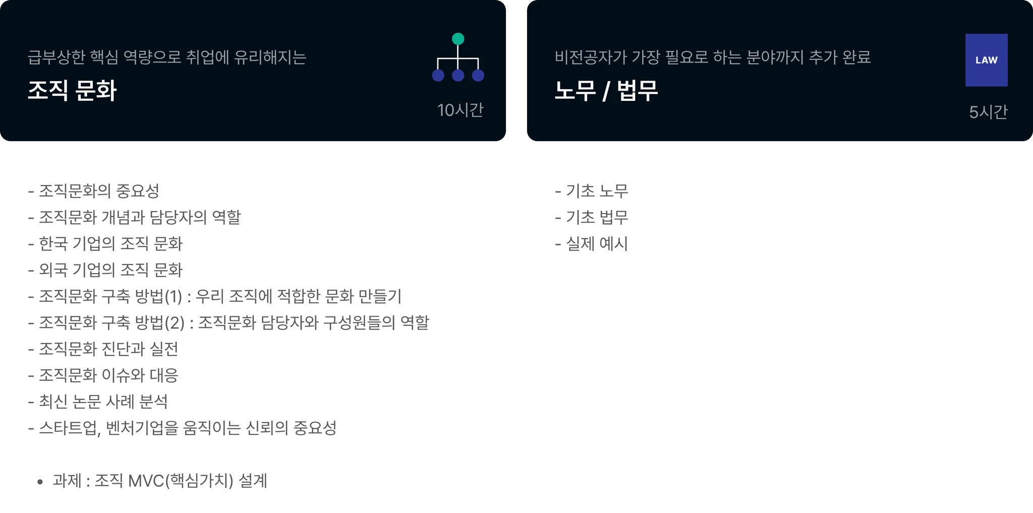 3개월 동안 5가지 직무 모두 배우고, 전직무 취업 준비에 도전해봐요!