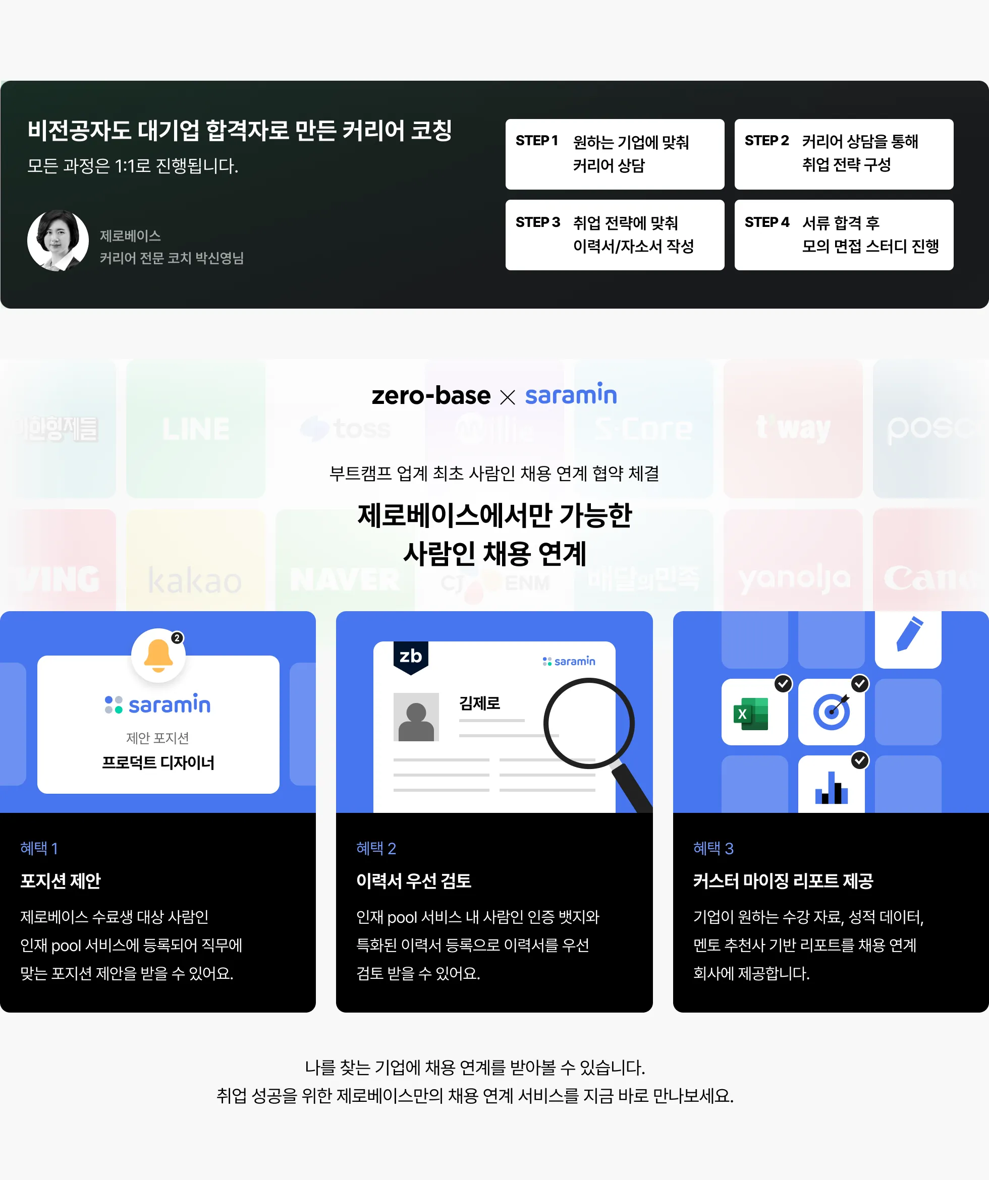 취업 / 이직까지 확실하게 1:1 All care 로 빠른 취업을 지원합니다.