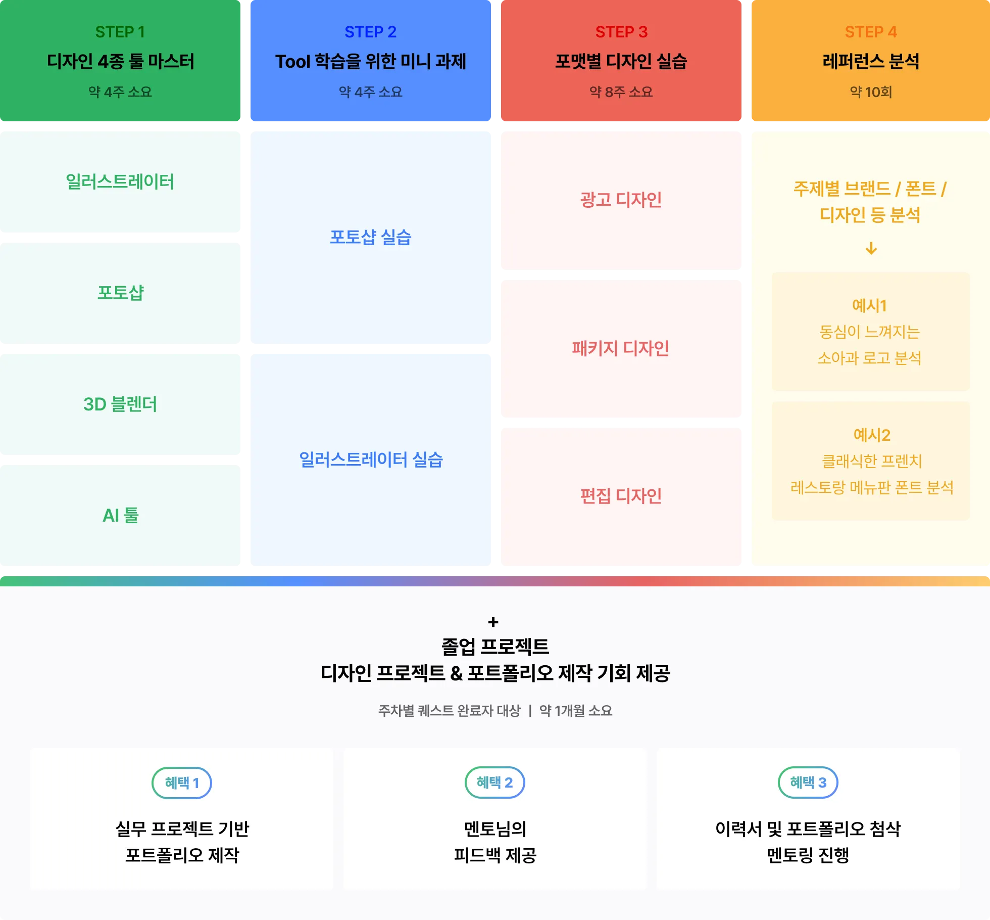 그래픽 디자인 취업 스쿨 주말야간반 4개월 커리큘럼 한 눈에 보기