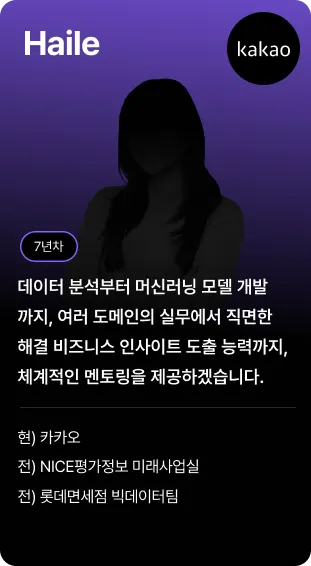 5년차 이상의 현직자라면? 15년 경력의 석/박사 출신 멘토님과 함께하는 자연어 기반 실무 프로젝트를 통해서 비즈니스 관점의 경험까지 쌓아갑니다. SOTA, 논문 100개 분석, 구현 팀스터디 등을 통해 관련 학습도 꾸준히 진행합니다.
