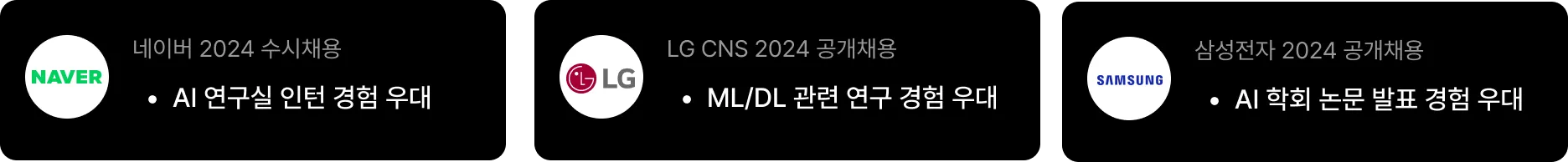모집 대상 | 1. 전공자/부트캠프 출신 2. 중고신입 3. AI 관련 대학원 석사
